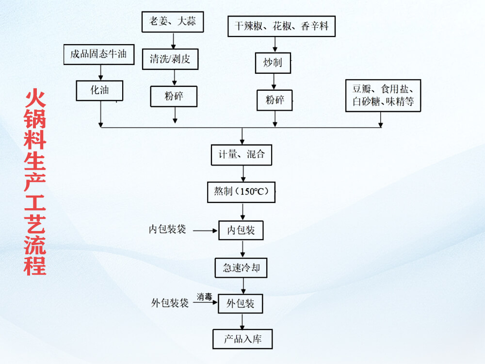 熬制合格后的产品成液态流体,流动性较好需及时转入火锅料91香蕉视频免费下载内,进行内包装,包装规格号为 50g/袋、150g/袋、300g/袋、400g/袋。